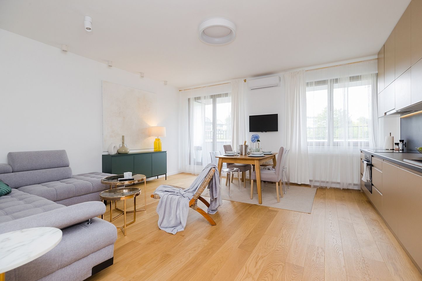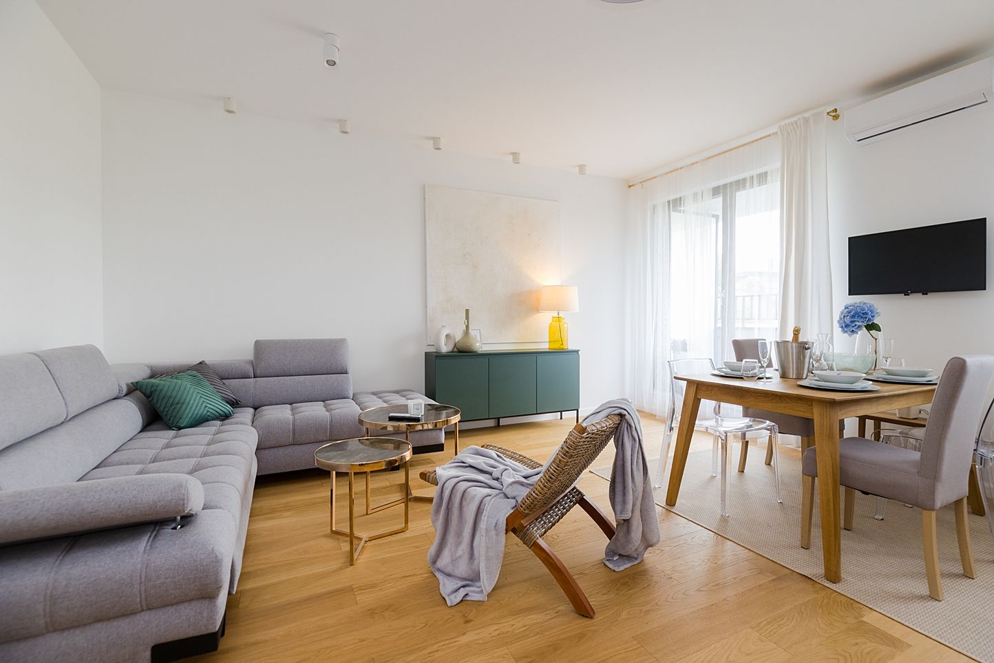 Zapraszamy do przestronnego, trzypokojowego apartamentu, który łączy skandynawski spokój z luksusowym wykończeniem. To idealna propozycja dla rodzin lub grup szukających przestrzeni, światła i najwyższego standardu w sercu miasta.