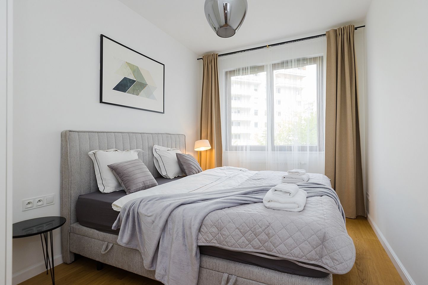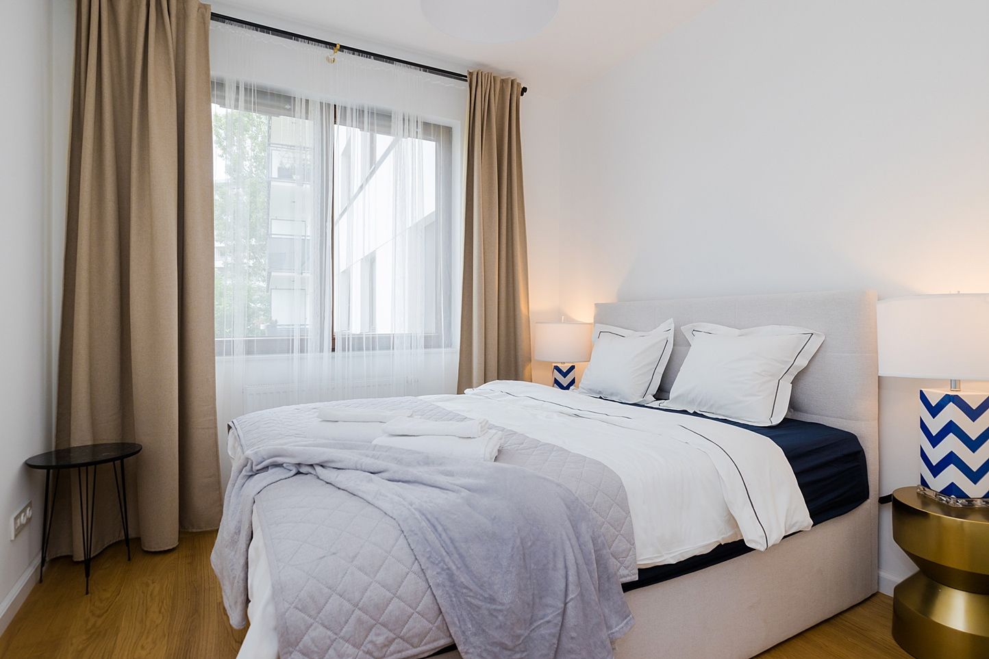 - Dwie Niezależne Sypialnie: Dwie oazy ciszy zaprojektowane w stylu soft-minimalism. Szerokie łóżka kontynentalne, puszysta hotelowa pościel i system zasłon gwarantują królewski wypoczynek i pełną prywatność.