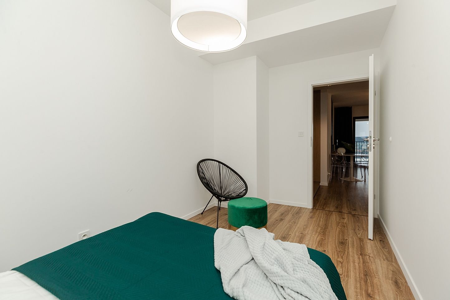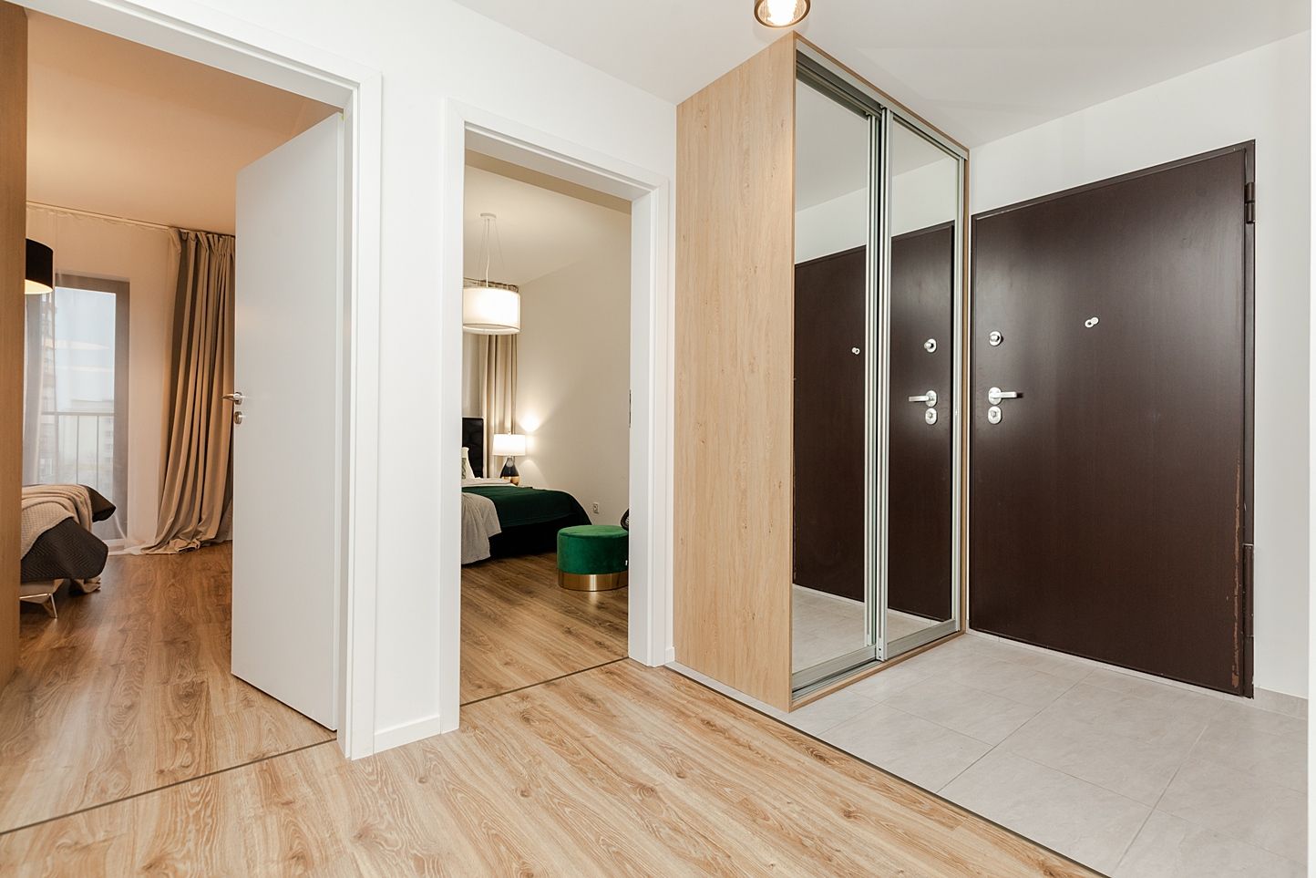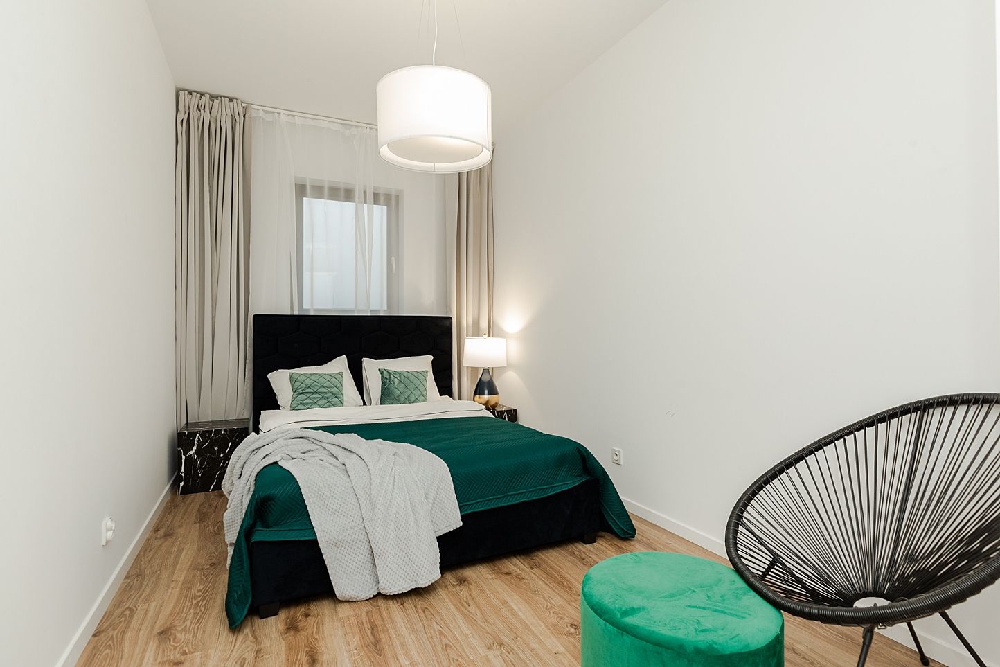 Zapraszamy do wyjątkowej, trzypokojowej przestrzeni, w której odważny design spotyka się z nieskazitelnym komfortem. Ten apartament to harmonijne połączenie głębokich kolorów, złotych detali i naturalnego światła, tworzące atmosferę luksusowego boutique hotelu w samym sercu miasta.